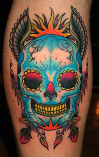 Skull Tattoo Combination With Star Tattoo Designs On The Calf